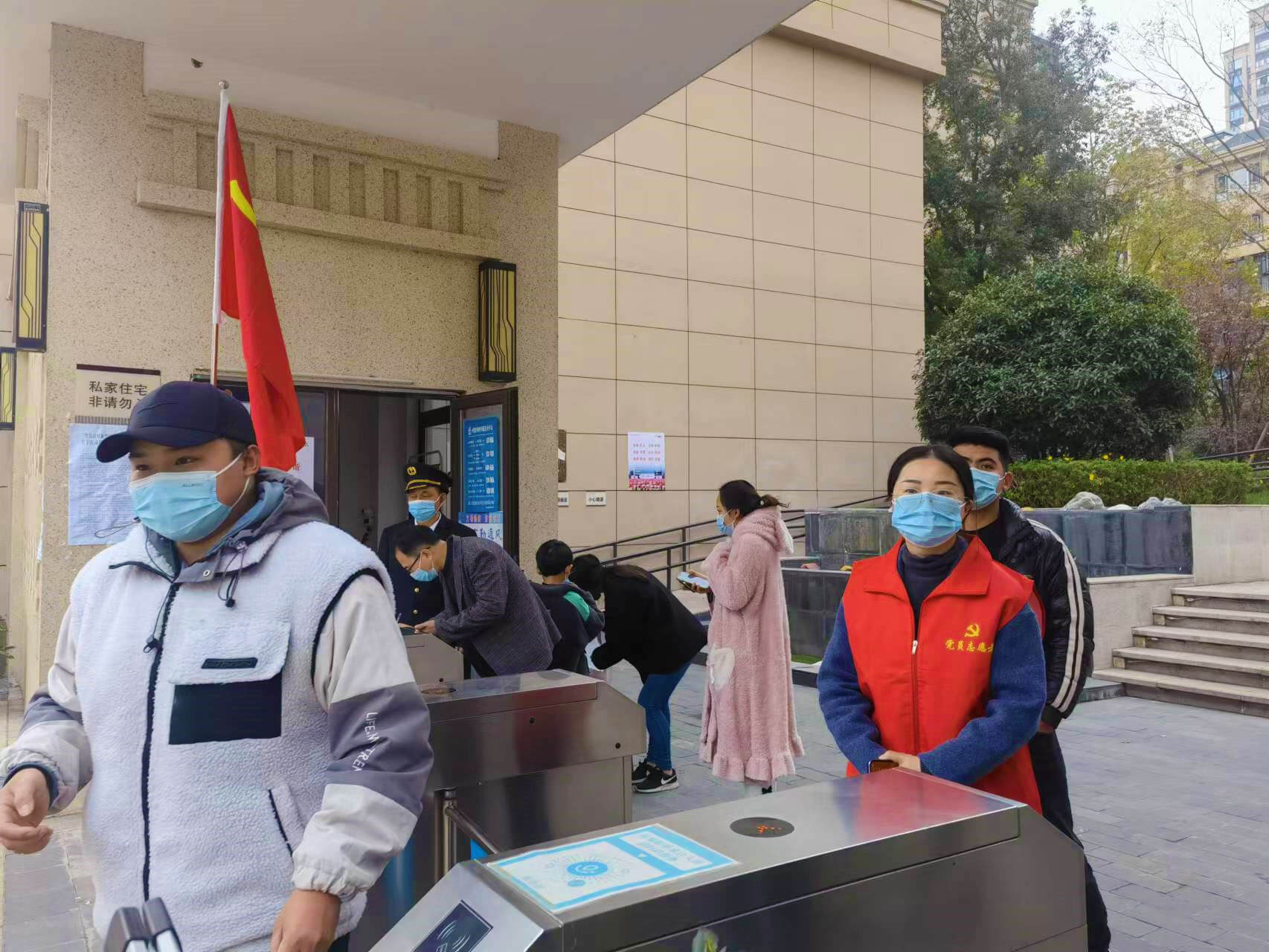 随后,在县“小区堡垒”微信小程序报名参与小区疫情防控项目的志愿者们陆续报到,迅速参加核酸信息登记、发动业主参与检测、排队秩序维护、出入口值守、特殊群体访问等工作。在社区党委的指导下,以50多名党员业主为主的志愿者队伍成立了小区疫情防控一线指挥部,统筹整合业主委员会、物业服务公司等资源力量开展防疫工作。